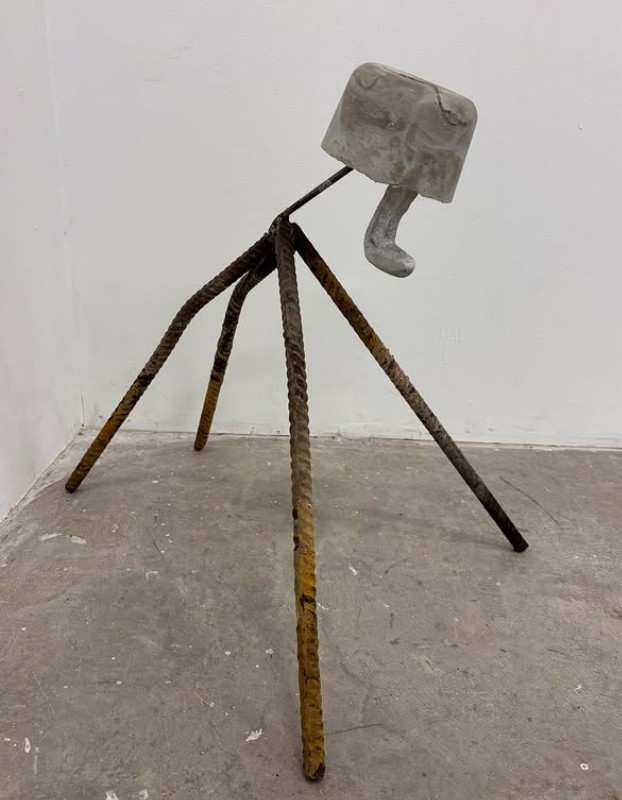 ‘, 2025, rebar, steele, concrete, aluminum cast of clamp, over 400 cumulative hours of ‘Angry Birds’ gamplay
